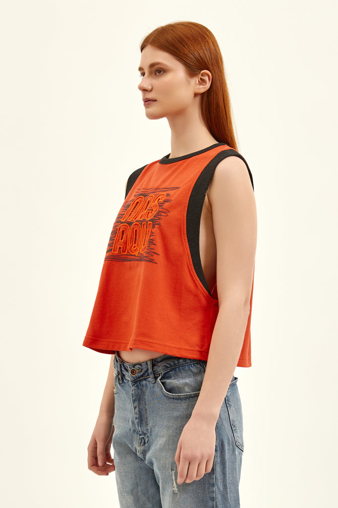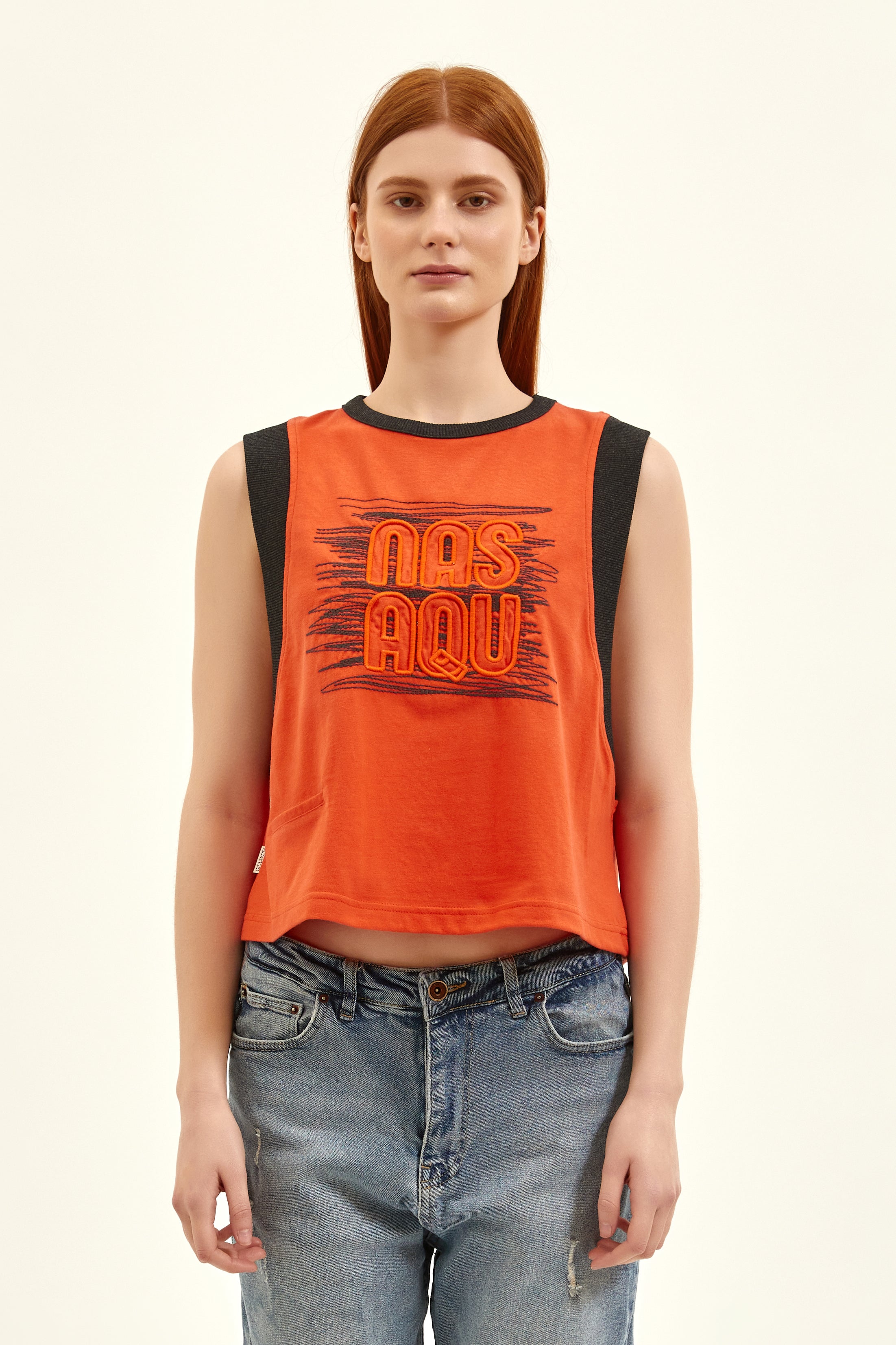 A part of the NASAQU Active series, it is a very comfortable yet stylish and feminine style. The V-cut detail at the back and dropped armholes set you free from boundaries.  You can wear it over sports bras or solo, for sure it will be a must-have piece of your wardrobe. There is an amazing zigzag embroidered brand logo at the front and high built S logo at the back.